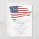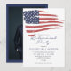 This retirement party invitation features a distressed watercolor American flag and simple neutral design. This invitation can be used to celebrate police first responders as well as navy or air force or any other personnel.