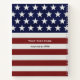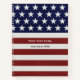 Show your pride for the USA with this custom notebook featuring an American Flag inspired design of Red, White & Blue stars and stripes. Add two lines of text to personalise.