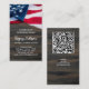 USA American Flag QR Code Rustic Wood Patriotic Business Card