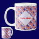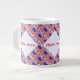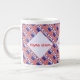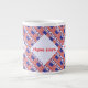 Personalised giant coffee mug showing the flag of the United States of America, in red, white and blue with stars and stripes, and the letters USA below, in the colours of the flag. Design is tiled for a more pleasing artistic effect and shows on three sides of mig. Also, you can personalise with your name in red letters, or create a gift by adding someone else's name. Cool for a housewarming party and using on Independence Day or 4th of July.