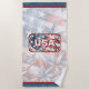 A fun beach towel featuring red, white, and blue, along with "USA." Use the template to personalise. You can keep the text or change.