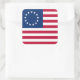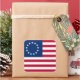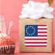 The Betsy Ross flag is an early design of the flag of the United States, named for early American upholsterer and flag maker Betsy Ross. The pattern of the Betsy Ross flag is 13 alternating red-and-white stripes with stars in a field of blue in the upper left corner canton. Its distinguishing feature is thirteen 5-pointed stars arranged in a circle representing the 13 colonies that fought for their independence during the American Revolutionary War.