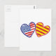 USA Catalonia Patriotic Love Hearts Postcard