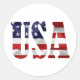 USA text and the Flag of the United States of America, embedded in each letter. Classic round sticker. You can choose another shape of the sticker from the menu.