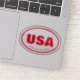 USA country code transparent oval vinyl sticker. Red text. United States of America. Create your own personalised abbreviation stickers for car, vehicle, truck, camper, RV, luggage, bike, water bottles, laptop and other products. Unique clear contour-cut stickers. Available in small, medium and large sizes. Add your own text. Great for international and national travel, road trips, vacations, sports events and more. Classic European style oval shape sticker sign. Colours can be changed.