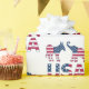 The design is of the United States' left political democratic party symbol, the donkey, the right republican party symbol, the elephant, along with the USA lettering - all presented overlayed on the USA flag featuring the white stars on blue and red and white stripes. It cannot be more fun and patriotic! :)