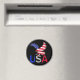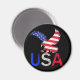 An American eagle in Stars and Stripes flying over “USA” in red, white, and blue. A unique American gift for the 4th of July or other special occasions to express your patriotism.