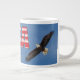 Go USA! USA text in flag colours along with a beautiful soaring bald eagle.
