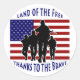 Beautiful American patriotic round stickers, available in small and large. A wonderful way to show your American patriotic pride and support for U.S. troops. The design features an American flag background, with a silhouette of soldiers in front. The main colours are red, white and blue and black. The sticker reads, America... Land of the free.. Thanks to the brave.. Please visit our store for other patriotic gifts, shirts, and greeting cards, in different, styles, designs and colours.