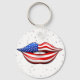 USA Flag Lipstick Stars and Stripe Colours on Smiling Sensual Woman's Lips