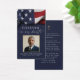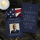 Keep the memory of a loved one close with this personalized patriotic prayer card featuring a cherished photo of them framed in faux metallic gold foil, the sentiment FOREVER IN OUR HEARTS, name and dates with an image of an American flag on the front and an editable prayer accented with a simple cross on the back in navy blue. With its simple yet elegant classic design and elegant script typography, it makes a meaningful keepsake to share at a funeral, memorial service or Celebration of Life and offers comfort and a lasting tribute for family and friends. Its small and portable size of 3.5x2" (wallet-sized) makes it convenient for loved ones to carry it with them as a reminder of your loved one’s life and spirit. Personalization makes each card unique.