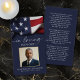 Keep the memory of a loved one close with this personalized patriotic prayer card featuring a cherished photo of them framed in faux metallic gold foil, the sentiment IN LOVING MEMORY, name and dates with an image of an American flag on the front and an editable heartfelt patriotic poem on the back in navy blue. With its simple yet elegant classic design and elegant script typography, it makes a meaningful keepsake to share at a funeral, memorial service or Celebration of Life and offers comfort and a lasting tribute for family and friends. Its small and portable size of 3.5x2" (wallet-sized) makes it convenient for loved ones to carry it with them as a reminder of your loved one’s life and spirit. Personalization makes each card unique.