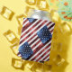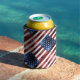 4th of July party can bottle cooler Sparkly USA flag in red and blue faux sparkles & glitters. We use photo of sparkles and not actual glitters.