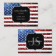 Personalise and customise elegant faux sparkly business card with your initial and name. USA flag in red and blue faux sparkles glitters. We use photo of sparkles and not the actual glitters.