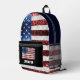 USA flag red white blue sparkles bling Custom name Printed Backpack