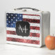 USA flag red white blue sparkles glitters Monogram Metal Lunch Box