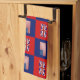 An alternating design with the American Flag and British Union Jack Flag on a red and blue background.