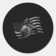 Unique design with USA flag incorporated into a striking walleye fishing illustration, showcasing patriotic spirit and passion for angling.