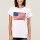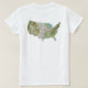 The front of this t-shirt boldly displays the USA flag with its distinctive red and white stripes with white stars on blue canton. This is matched at the back by an attractive map of USA.