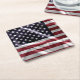 USA Flapping Flag Red, White Stripes, Starry Blue Square Paper Coaster