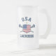 Lacrosse. Flag shield design with crossed sticks. Designs available in both regular and weathered, vintage-style versions. USA lacrosse. United States lacrosse t-shirts, mugs, caps, stickers and more.