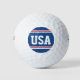 Golf balls shown with USA text on a red,white,blue background. Customise this item or buy as is.