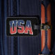 Colourful abstract USA grunge text design with American flag colours (blue, white and red)