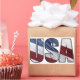 An original design by Shelley Neff Design and Photography featuring the letters USA layered by bold and brilliant patriotic red, white and blue colours.  This would make the perfect gift for anyone who is a collector of USA patriotic décor or USA sports team member or fan.  Looks perfect on any product but especially postcards, stamps, greeting cards, pillows, cookies, brownies, ceramic tile, trivets, plates, t-shirts, clocks, posters, photographic or canvas prints and can be personalised by adding your name or other text by choosing 'Customise It'.  To see all other products in our store matching this design go to www.zazzle.com/sneffygirl* and click on ‘Patriotic > USA in Red White and Blue American Patriotic Flag’ category.  Thanks for your interest!