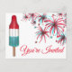 Postcard an original marker illustration of a red white and blue rocket pop popsicle and a burst of fireworks. Simply personalise the text for a unique July 4th cookout, picnic, party, or event invitation.