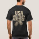 Iconic vintage dog tags with scratched surfaces, draped over large block text. Ideal for retired soldiers or military families honoring tradition and service.