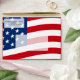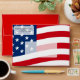 Add your business name other text to this personalised USA patriotic business merchandise. Red white and blue waving flag with steamlined text design. American flag for USA Patriots! Great for a construction, service, home improvement, skilled trades, political, government, sales or mens business!