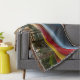 A quality printed throw has its advantages. This is a much finer weave throw than its loopier cousins, and though lighter, it is worth the investment for custom room accessorizing. The back is much prettier than the typical brown, and the fringe on the long sides very vivid, the selvage nicely done. Before photographing, I washed the throw in cold water, delicate, with a thicker woven throw the same size. On tumble dry low, this throw was dry in half the time as the other. This is a very practical quality if you use throws for furniture covers or to wrap up in frequently. The sleekness of the fabric makes it a great layer for accenting or protecting without the feeling of sitting on too much stuff. Perfect for napping or when you feel a light chill coming on. The color printing is beautiful and on this fabric, matched the design and color of my Photoshop image. This is an advantage for blending room fabrics and colors. The fringe on the short sides prints the colors from the design image and therefore varies from the side fringe. I streaked a white fractal line through the plaid pattern to give the illusion of weaving. This printed as crisp as an illusory thread, and put some white in the short side fringe, showing another advantage of print vs loomed- for artistic purposes, line lines, detail, and color integrity can be planned and preserved. My loomed throws have color limitations and more of a needlepoint texture. Print throws reproduce an exact image. The throw felt a little stiff straight out of the package, but this went away in the first delicate wash. Of course I searched the wash water for ink or bleeding and there was none.