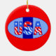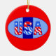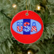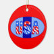 USA in red, white and blue with stars and stripes decorated text in an oval, is a unique design to display your patriotic pride in America on Memorial Day and the 4th of July.