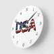 USA overlaid on US Flag Black Script Numbers wccn Round Clock