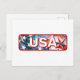 A fun postcard featuring red, white, and blue, along with "USA." Use the template to personalise. You can keep the text or change.