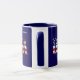 The USA text and the Flag of the United States of America, embedded in each letter on the left and right side of the mug. White text Proud to be an American on the right side over the USA image. Navy colour background. Patriotic customisable coffee mug for anyone. You can change the style of the mug, the colour of the background, both images and the template text. Use the CUSTOMIZE button to fine tune the design to your personal needs and wishes.