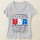 USA is written in red white blue large bold font. Proud to be an American is written in navy blue underneath. Typography. Land of the free. Home of the Brave written in background. Declaration of Independence July 4, 1776 in black text. 50 Stars for 50 states outlining our American country map (randomly placed by eyeing out map). Stars representing Alaska at the top and Hawaii at the bottom left-side. Show your American citizenship patriotic love and pride for our great country and constitution. NOTE: If selecting a different background colour be sure the white text and images in the design show. Original Design © TamiraZDesigns.