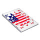 Red, White, Blue: These traditional colours of the US flag are used throughout the fragmented stripes and stars, ensuring a patriotic and recognisable appearance. The colours are bright and saturated, enhancing visual impact.