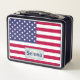 Show your patriotism with this Lunch Box featuring the Flag of the State of Arizona USA with a licence plate on one side and the Star Spangled Banner with a name licence plate on the other side. The text name can be changed.