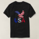 An American eagle in stars and stripes flying over “USA” in red, white, and blue. A unique USA gift for the 4th of July or other special occasions.