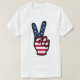 A Peace sign hand featuring the flag of the USA aka United States of America, red white and blue stars and stripes
