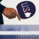 USA Text American Flag on Custom Navy Blue Sport Ping Pong Paddle