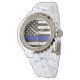 * Powerful Timepiece Police Officer Woman's Rhinestone with White Enamel Watch Band Strap. *