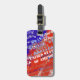 Easily identify your bags with a U.S. patriotic typography image. The name of the country, United States of America, in different font styles and sizes, and the blue and red american flag. Personalise it with your name and phone, or any other information you prefer