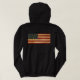 Women's black hoodie USA vintage distressed grunge old style flag design. This scratched aged design features a small USA flag in retro vintage style and a large flag on the back of the hoodie. This design is great to show you are proud to be American.