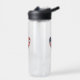 A fun water bottle featuring red, white, and blue, along with "USA." Use the template to personalise. You can keep the text or change.