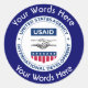 This custom sticker is decorated with the United States Agency for International Development USAID shield that can be customised with a choice of words above and below that allow you to personalise it with the name of a person, place, position, etc.