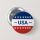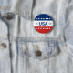 Celebrating the USA's 250th anniversary. This red, white, and blue button has the word 'USA' in the center. The years 1776 and 2026 are next to USA. The top stripe is blue and has white stars. The center stripe is white. The bottom stripe is red with white stars.