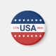 Celebrating the USA's 250th anniversary. This red, white, and blue magnet has the word 'USA' in the centre. The years 1776 and 2026 are next to USA. The top stripe is blue and has white stars. The centre stripe is white. The bottom stripe is red with white stars.