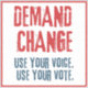 Social justice / protest / reform square car decal with red and blue "Demand Change. Use Your Voice. Use Your Voice" text